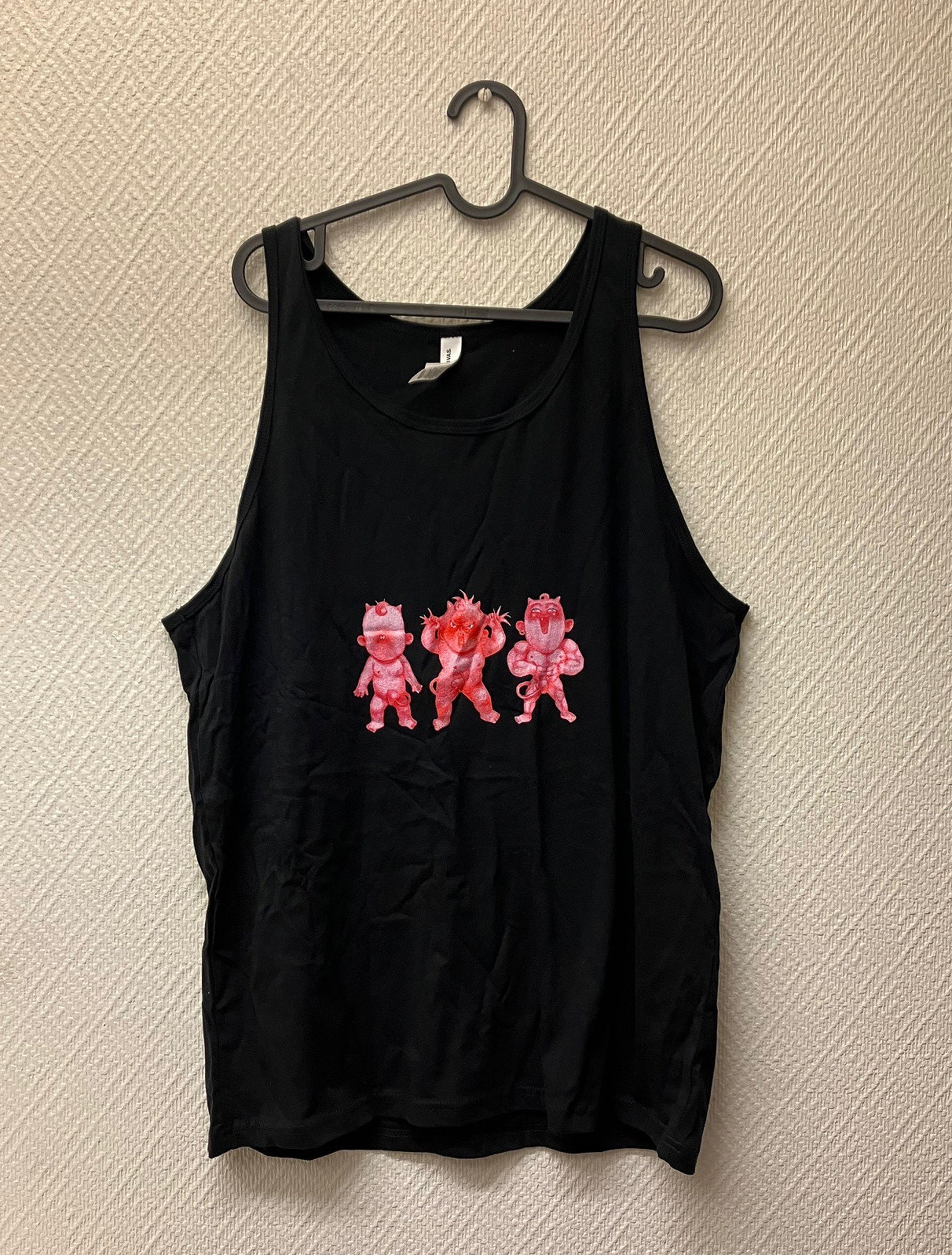 Black tank top size large. Feels nice to wears and shows off three moods! Print quality isn't the best